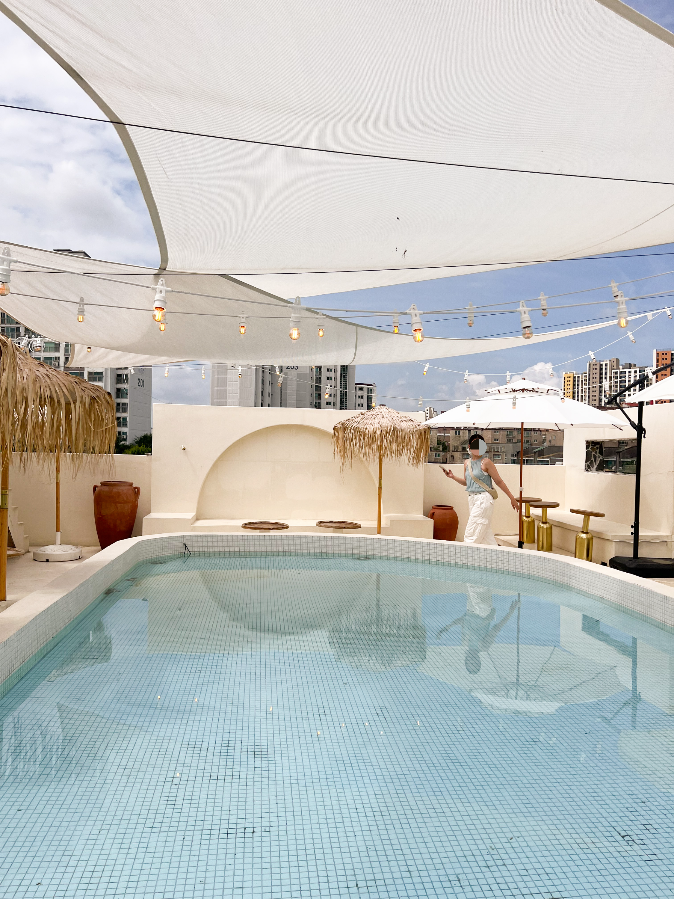 도나스 흡입하고 드디어 루프탑 수영장! 역시 이국적인 감성이 물씬 풍깁니다.