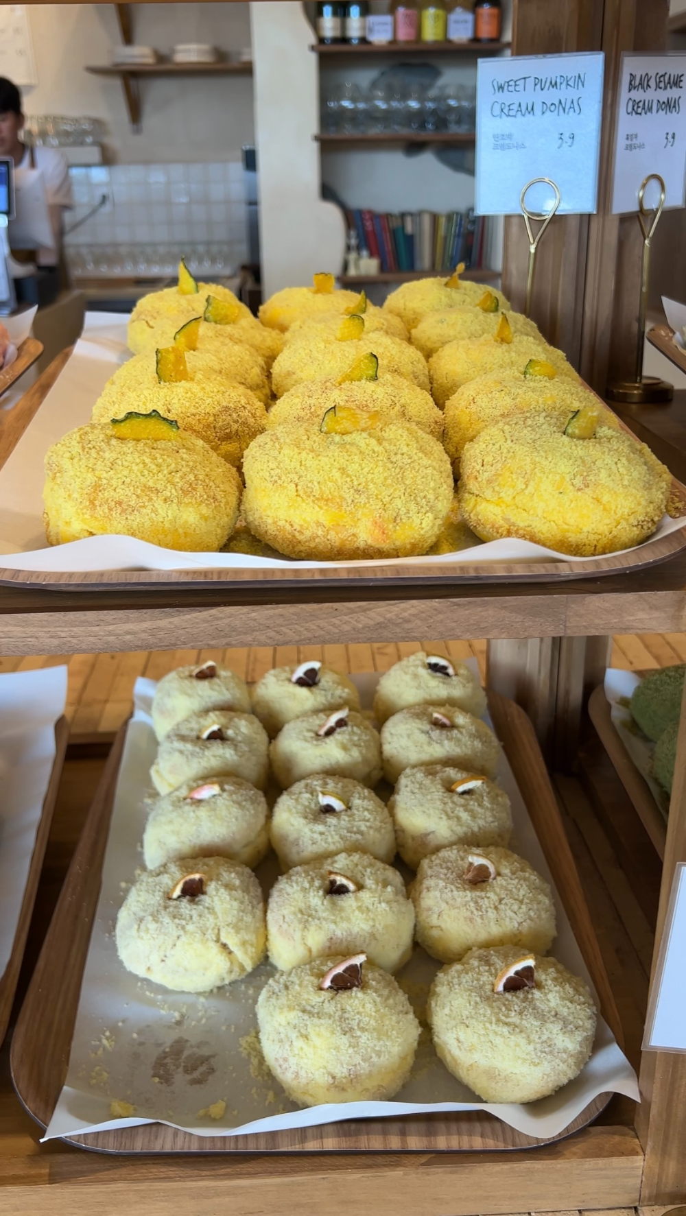 단호박크림도나스, 순수우유도나스, 흑임자도나스, 초당옥수수도나스, 잠봉뵈르도나스 등등. 종류가 정말~~ 많았어요.
