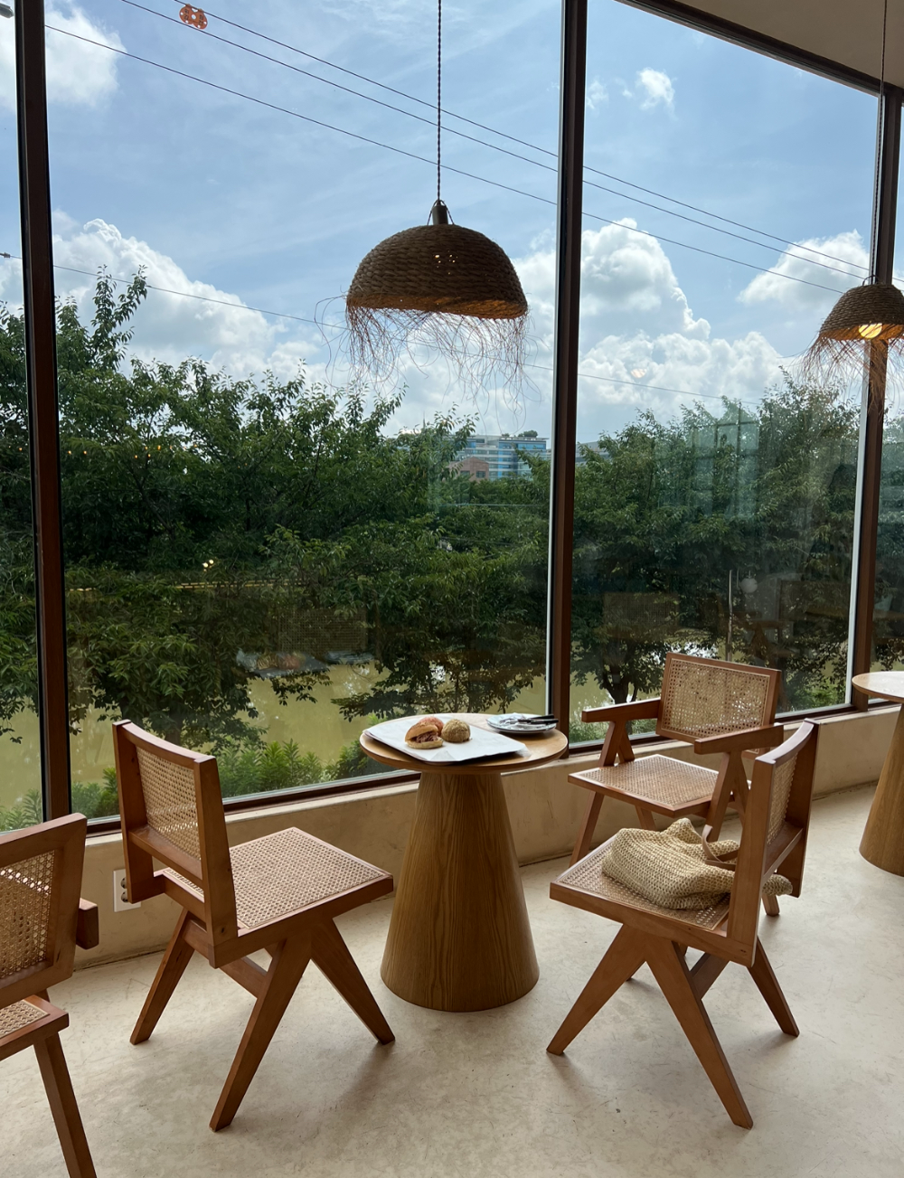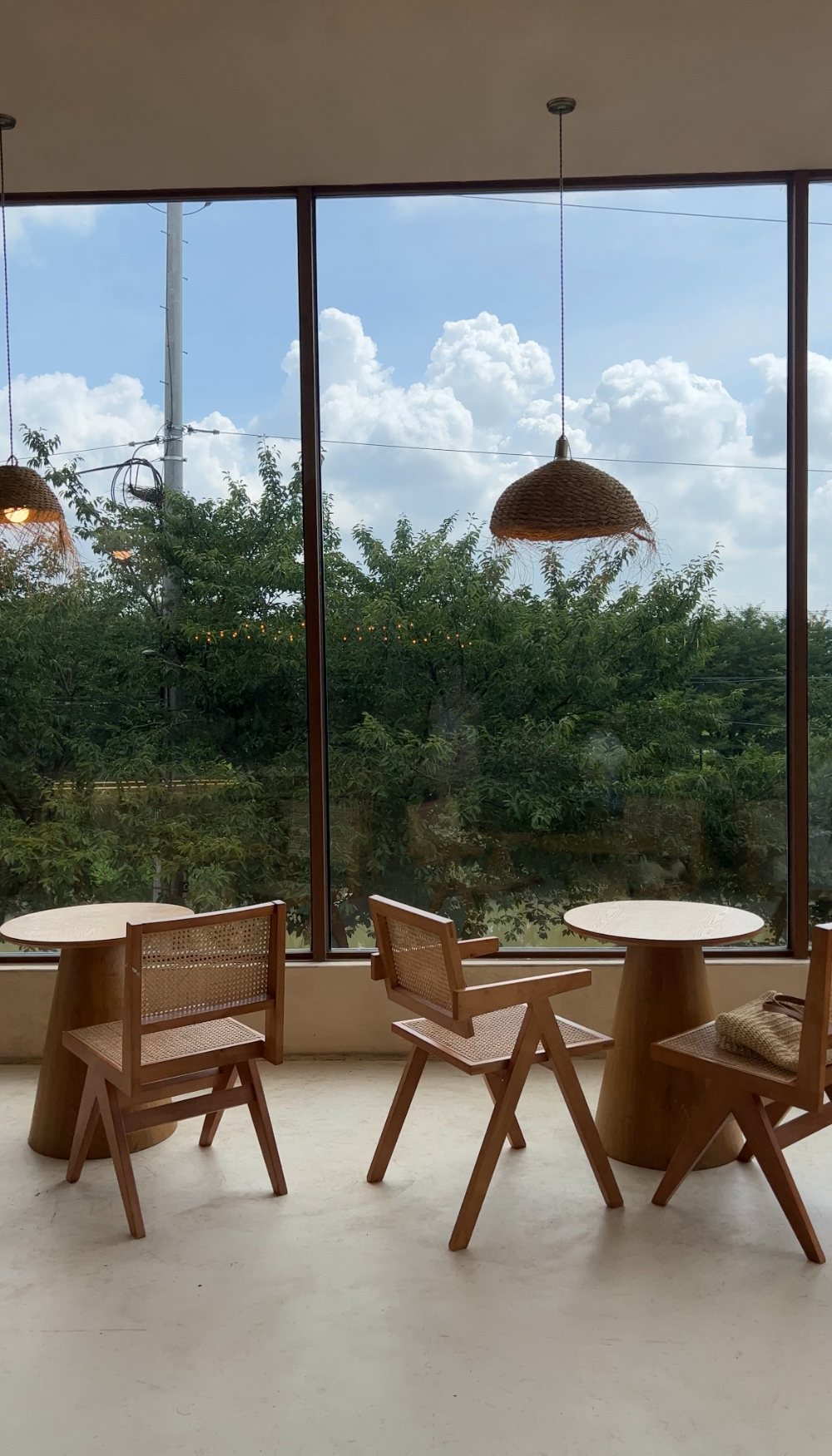 통창으로 되어있어 푸릇푸릇 나무와 예쁜 하늘을 볼 수 있어요. 2층 뷰 너무 마음에 쏙 들었습니다.